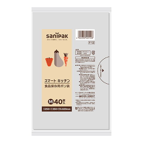 商品名:日本サニパック F12 スマートキッチン 食品保存用 ポリ袋 M 40枚入り 0.02mm