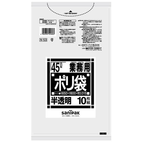 商品名:日本サニパック N53 Nシリーズ強化45L 半透明 10枚