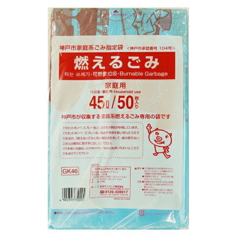 【ゴミ袋】日本サニパック 神戸市指定袋 GK46 神戸市燃えるごみ 45Lサイズ 50枚入り ( 4902393750295 )