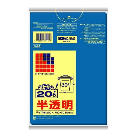 商品名:日本サニパック 南河内地域推奨袋 青半透明 30L 20枚