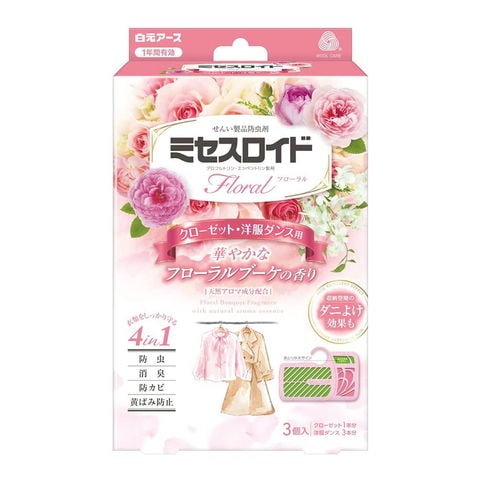商品名:白元アース ミセスロイド フローラル クローゼット・洋服ダンス用 1年間有効 フローラルブーケの香り 3個入