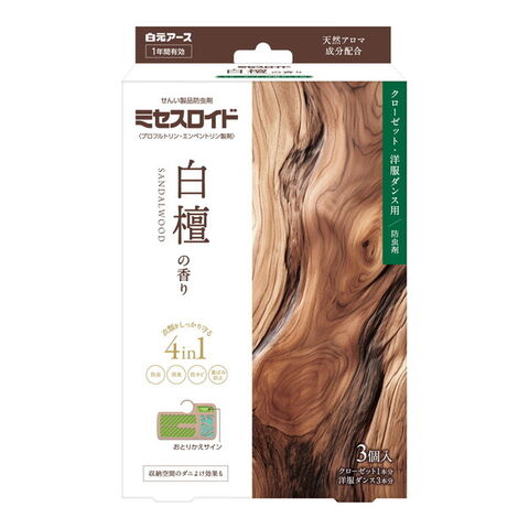 商品名:白元アース ミセスロイド クローゼット 洋服ダンス用 1年防虫 白檀の香り 3個入 防虫剤