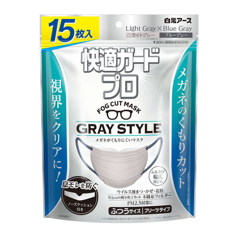 商品名:白元アース 快適ガードプロ グレースタイル プリーツタイプ ふつうサイズ 15枚入り マスク