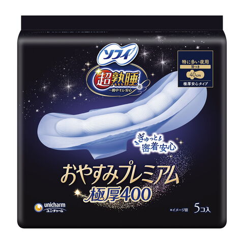 商品名:ユニ・チャーム ソフィ 超熟睡 おやすみプレミアム 極厚400 羽つき 5コ入