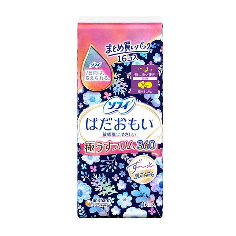 商品名:ユニ・チャーム ソフィ はだおもい 極うすスリム 360 特に多い夜用 羽つき 36cm 16コ入