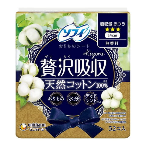 商品名:ユニ・チャーム ソフィ Kiyora ぜいたく吸収天然 コットン 無香料 52枚入