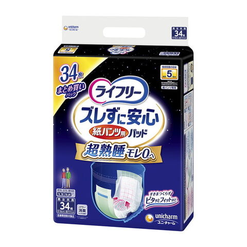 ユニ・チャーム ライフリー ズレずに安心 紙パンツ専用 尿とりパッド 5回吸収 夜用 スーパー 34枚入