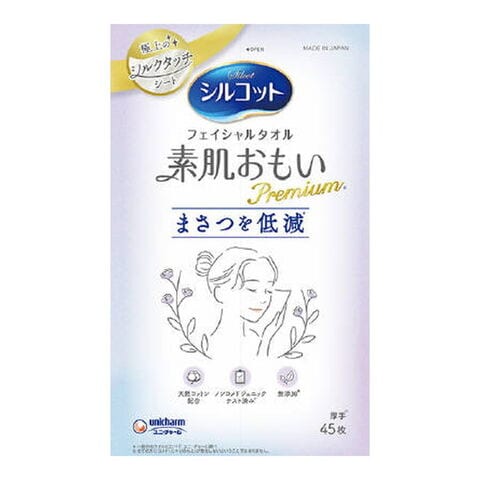 商品名:ユニ・チャーム シルコット フェイシャルタオル 素肌おもい プレミアム 45枚入 使い捨てタオル まさつ低減シルクタッチシート