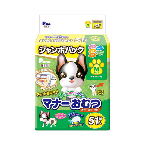 第一衛材 P・ワン 男の子&女の子のためのマナーおむつ のびーるテープ ジャンボパック Mサイズ 51枚入り