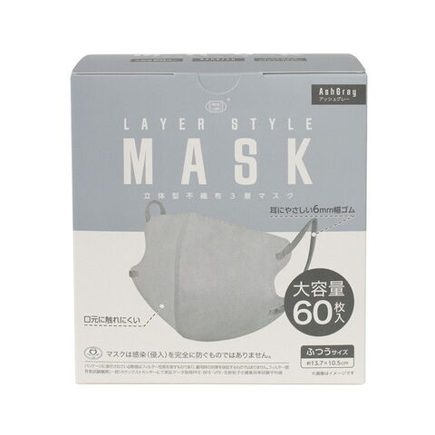 商品名:富士 レイヤースタイルマスク ふつうサイズ アッシュグレー 大容量 60枚入 マスク