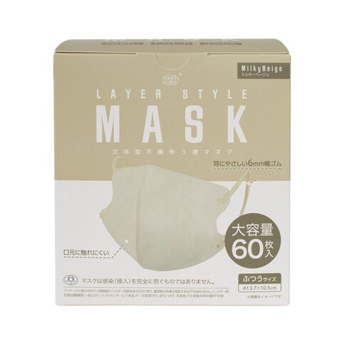 商品名:富士 レイヤースタイルマスク ふつうサイズ ミルキーベージュ 大容量 60枚入 マスク