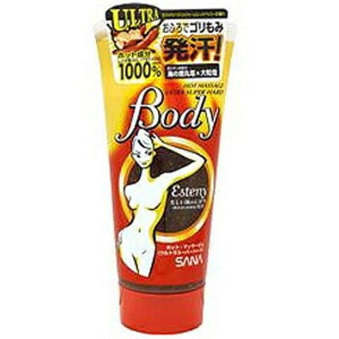 「サナ エステニー ホット・マッサージュ ウルトラスーパーハード 240g」は、唐辛子エキス、しょうが根エキスなどを配合した温感タイプの塩マッサージです。海藻エキスや海のにがりを配合し、お肌を引き締めます。焼丸塩と大粒塩のスクラブマッサージで、ゴリゴリもめます。ホットなスパイシージンジャーとレッドペパーの香り。