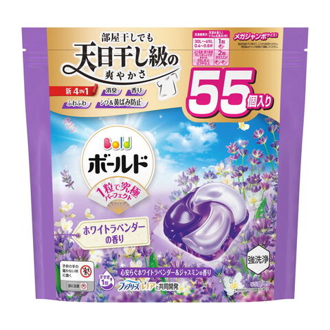 商品名:P&G ボールド ジェルボール 4IN1 心安らぐホワイトラベンダー&ジャスミンの香り つめかえ メガジャンボサイズ 55個入 洗濯用洗剤