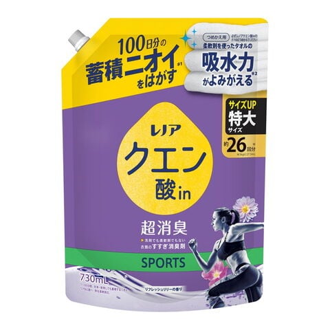 商品名:P&G レノア クエン酸in 超消臭 SPORTS リフレッシュリリーの香り つめかえ用 特大サイズ 730mL 衣類のすすぎ消臭剤