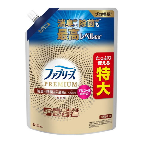 商品名:P&G ファブリーズ W除菌 + 消臭プレミアム 無香料 つめかえ用 特大サイズ 610mL 衣類・布製品消臭剤