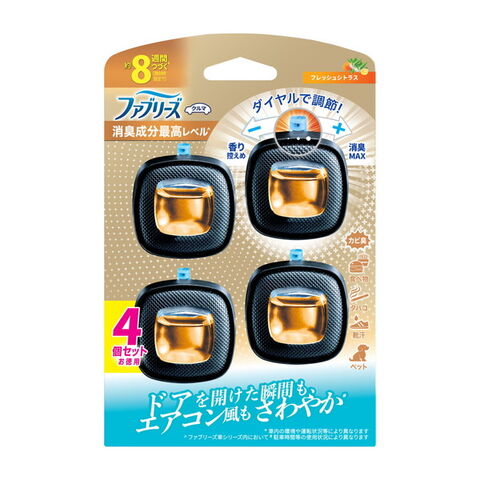 商品名:P&G ファブリーズ イージークリップ 消臭成分最高レベル フレッシュシトラス 4個パック 消臭芳香剤 車用