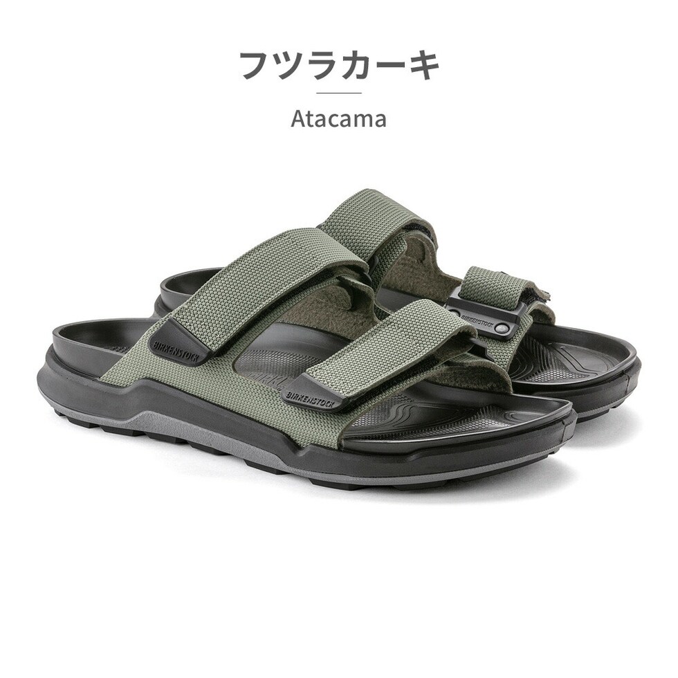 BIRKENSTOCKの定番Arizonaからインスピレーションを受けたAtacamaは一日中歩いていたいあなたにぴったりの一足です。バックルの代わりに面ファスナーを使用し、アウターソールでも踵の部分をしっかりと強化し機能性も抜群。冒険好きでアクティブなBirkenstockファンのための一足です。2層構造でフットベッドを支える発泡ポリウレタン製アウターソールは柔軟性に富み、グリップも確実、極めて耐久性の高い素材です。アッパーは肌に優しく耐久性の高い合成素材Birko-Florが未来的なデザインで新しいルックスをアピールしています。