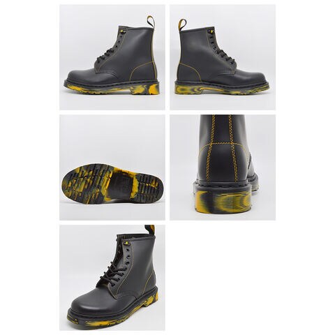 ドクターマーチンのアイコンカラーであるイエローとブラックを基調に、定番モデルを再構築したレースアップブーツ。