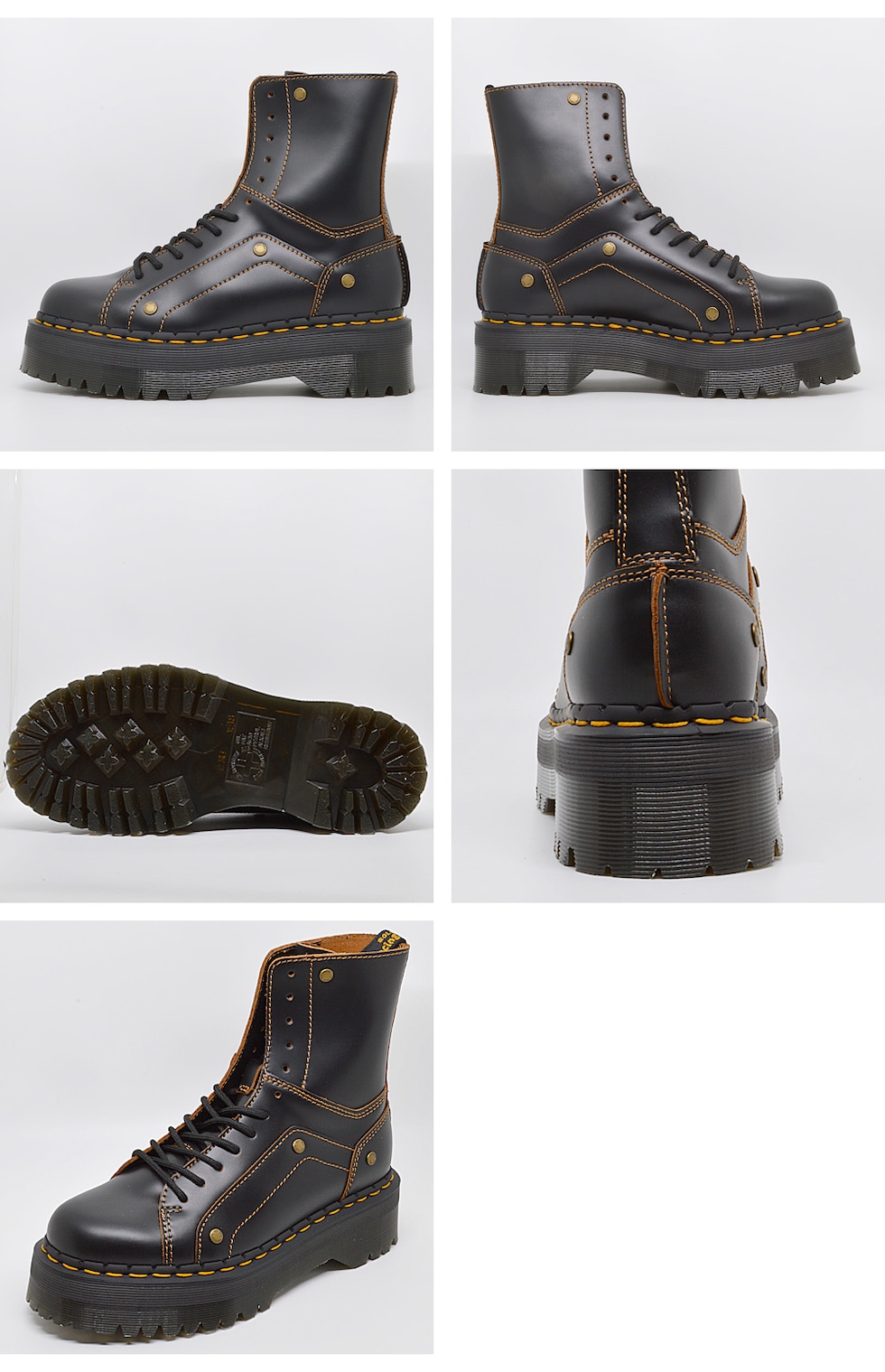 パーツを貼り合わせたかのような立体的なデザインの厚底レースアップブーツ。ドクターマーチンの過去のアーカイヴからアイデアを得たシルエットを現代的にアップデートしました。