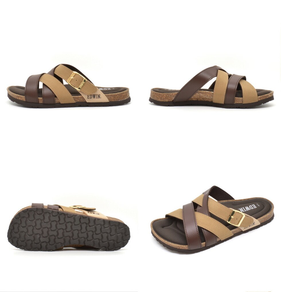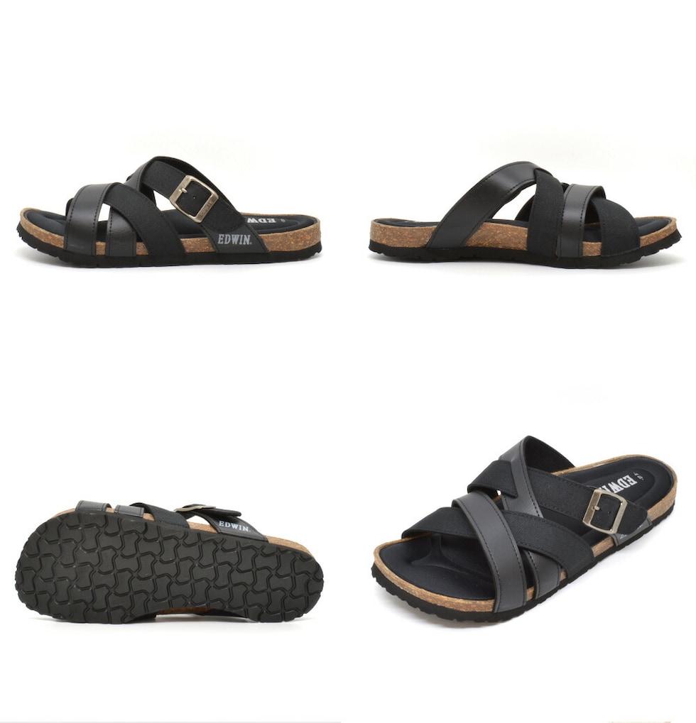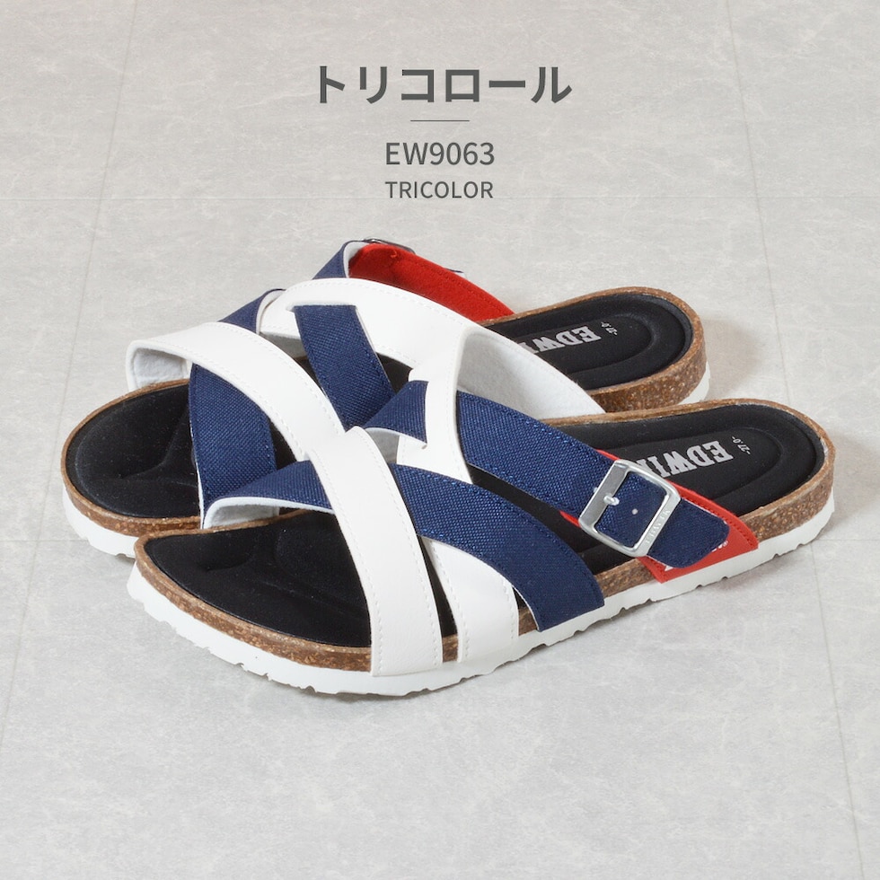 20%OFF エドウィン サンダル メンズ EDWIN EW9063 つっかけ 革 コンフォート 天然コルクフットベット クロスストラップ