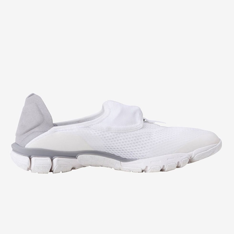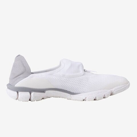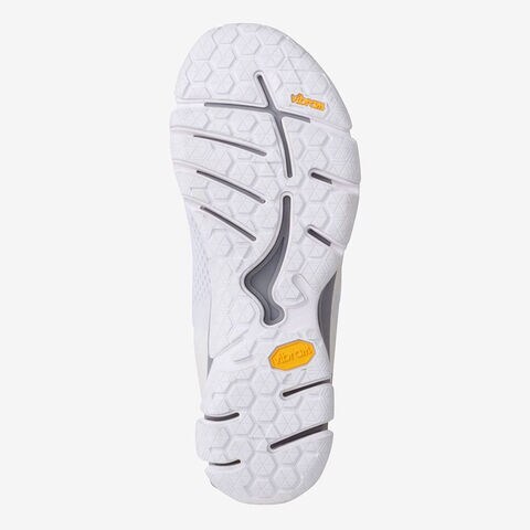 水陸両用での活動を想定して開発した、ウォーターシューズです。耐久はっ水加工を施したダブルラッセルメッシュをアッパーに使用し、水切れのよさを向上。インソールにもパンチング加工で水抜け穴を作り、シューズ内の水をスピーディに排出します。かかとは折りたたんで履ける可動式に仕上げ、リラックスシーンと行動時の両方で快適さを高める仕様です。ボトムユニットにはEVAミッドソールを使用し、TPU クレイドルテクノロジープレートで歩行時の剛性を確保。アウトソールには、ヴィブラム社のメガグリップラバーを採用し、濡れた岩場でも優れたグリップ力を発揮します。川や海での水遊び時はもちろん、カヤックやSUPなどの水上アクティビティ用シューズとしても幅広く活用できます。