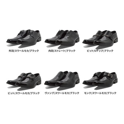 モンクストラップ・ビット・レースアップ・ヴァンプローファー・ストレートチップ・スワールモカの6タイプから選べるビジネスシューズです。