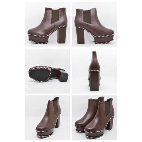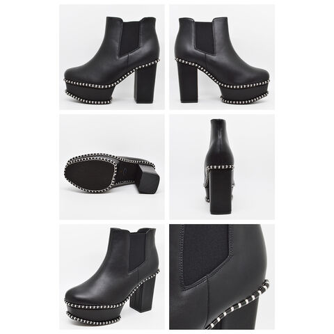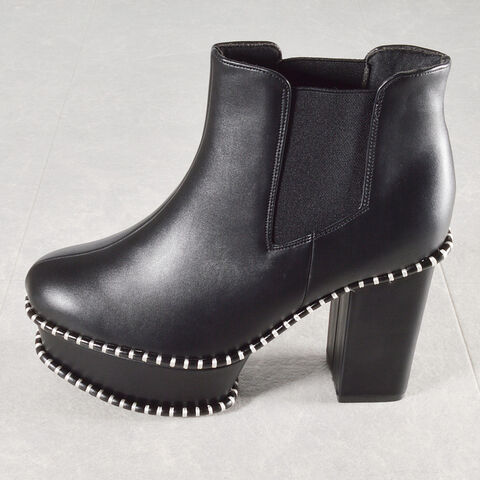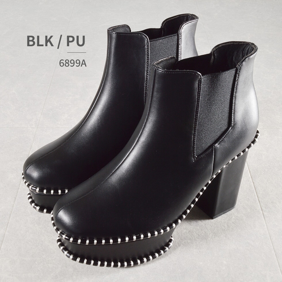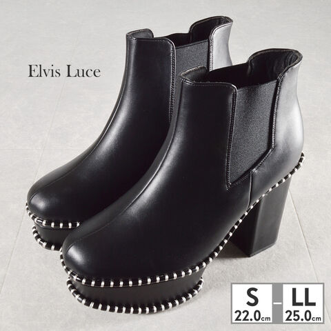 Elvis Luce ブーツ レディース コバステッチサイドゴア厚底ショートブーツ 6899 エルビスルーチェ ミドル カジュアル 太ヒール ふわ・らくインソール 美脚効果 ヒール高さ10cm