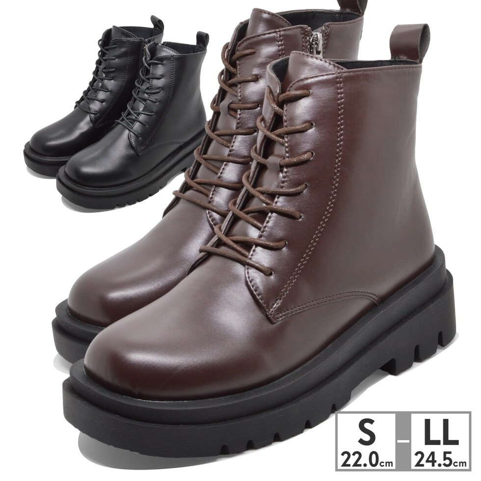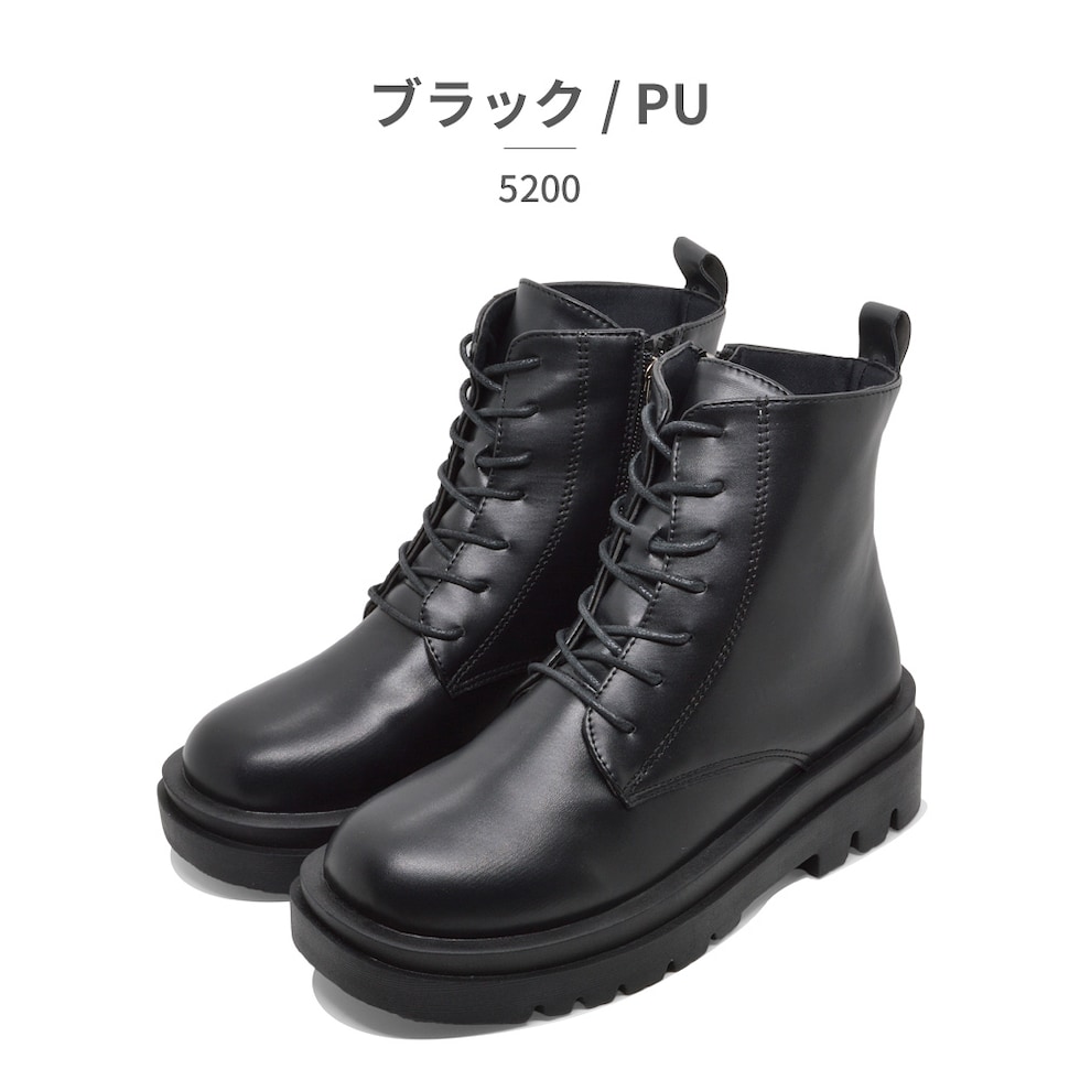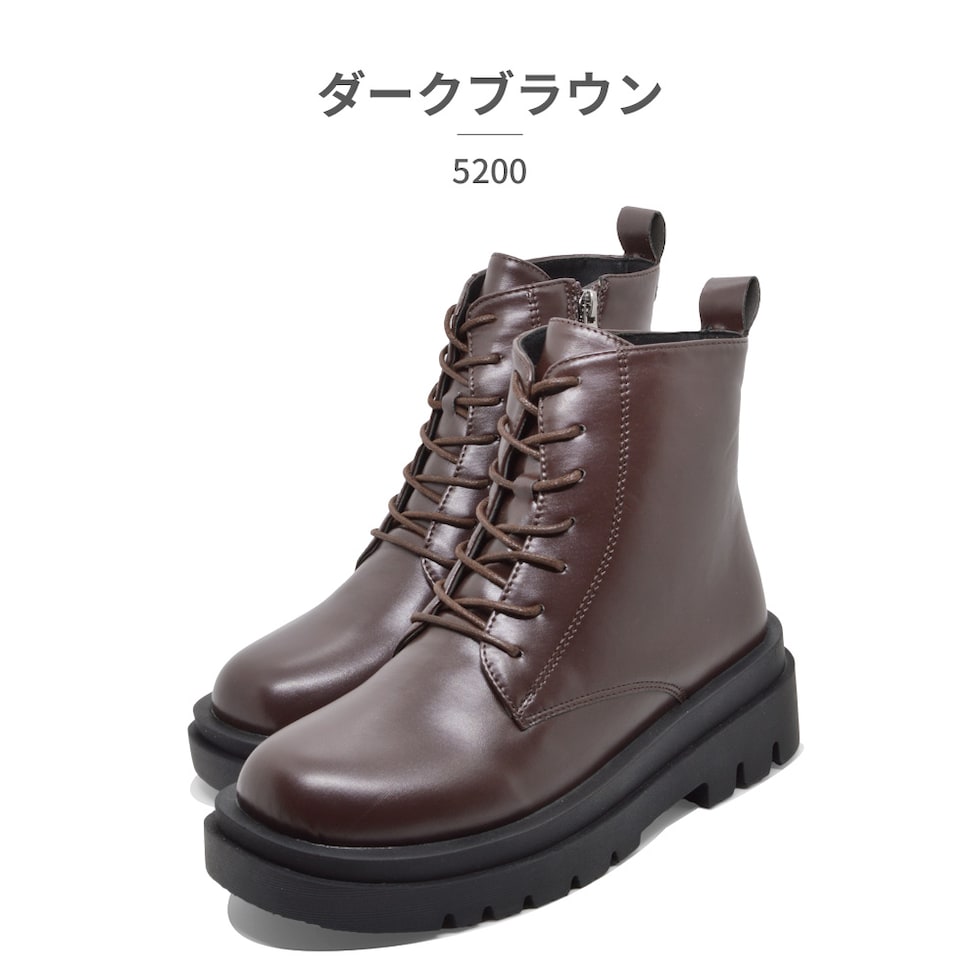 ブーツ レディース 5200 サイドファスナー レースアップブーツ 厚底
