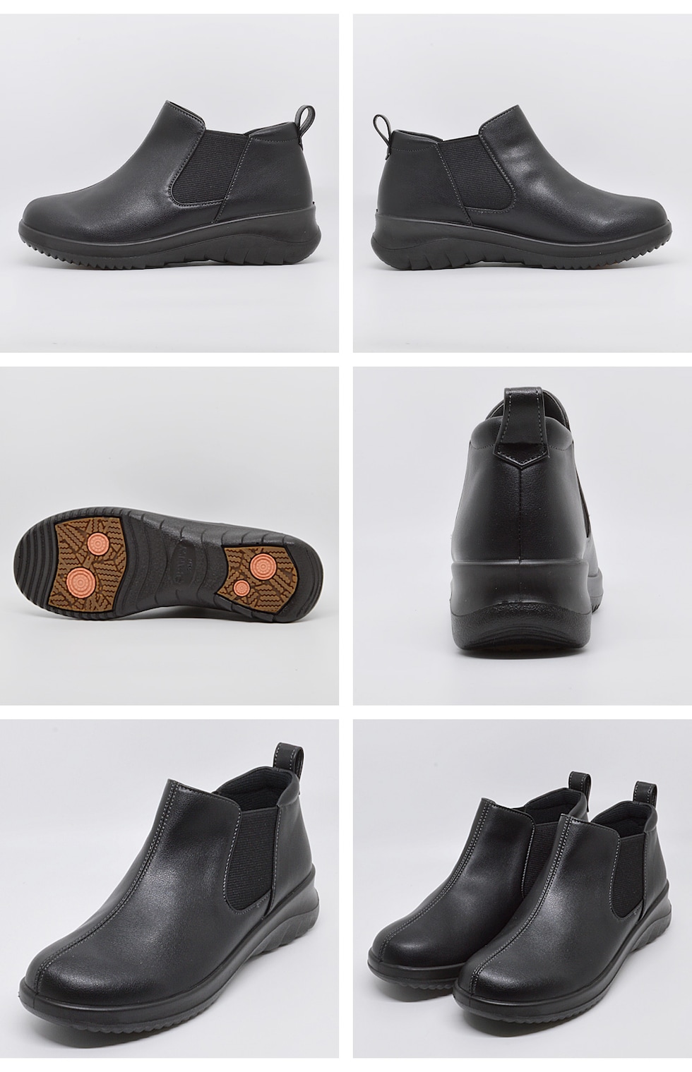スポッと脱ぎ履きしやすいサイドゴアショートブーツ。メンズライクなデザインがスタイリッシュな足元を演出。かえりが良く歩きやすいから、長時間のお出かけにも重宝します。