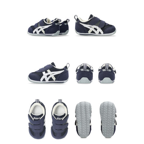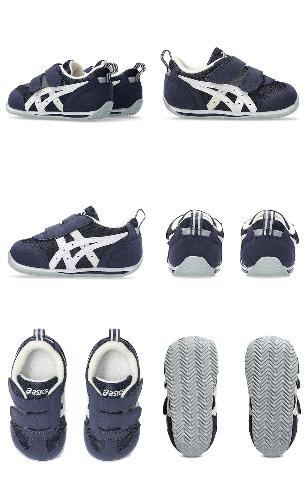 約1歳から3歳の幼児向けに展開する「BABY」シリーズのローカットシューズ。かかとの安定性を重視し、かかとを包み込む立体的な中敷を採用しています。扇形のつま先部分は足ゆびをのびのびと動かすことができ、踏ん張りやすいのが特徴。インナーソールには抗菌・消臭効果のあるシャインアップ、汗をすばやく吸収・拡散してドライ感を保つウォーターマジックを採用。靴の中を快適に保ちます。フィット感の調節がしやすい2本ベルトで、アッパーは通気性にすぐれたラッセルメッシュを使用しています。明るくポップな色合いで、ウエアとのコーディネートも楽しめるカラー展開です。街灯や車のライトなどの光を反射する再帰反射材(リフレクター)を本体の一部に採用しています。