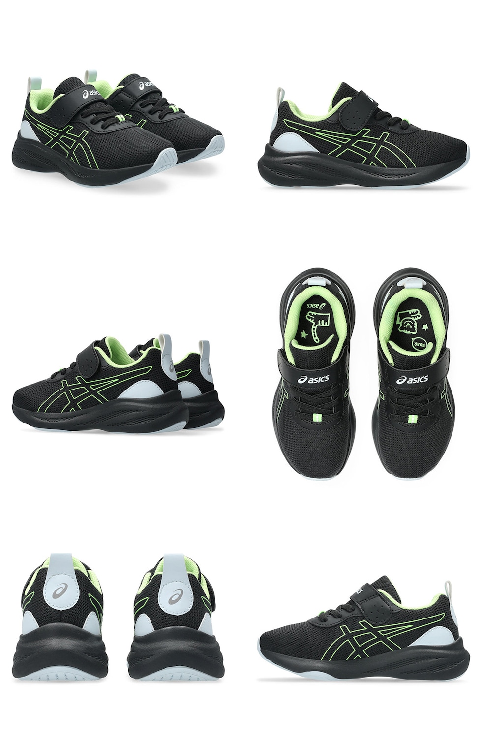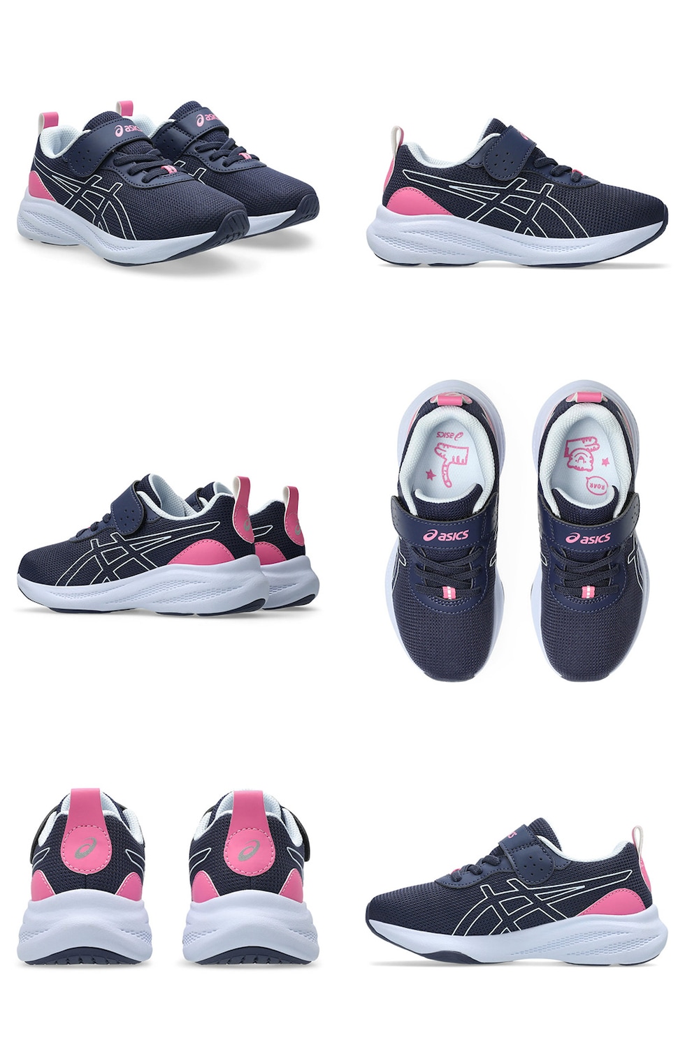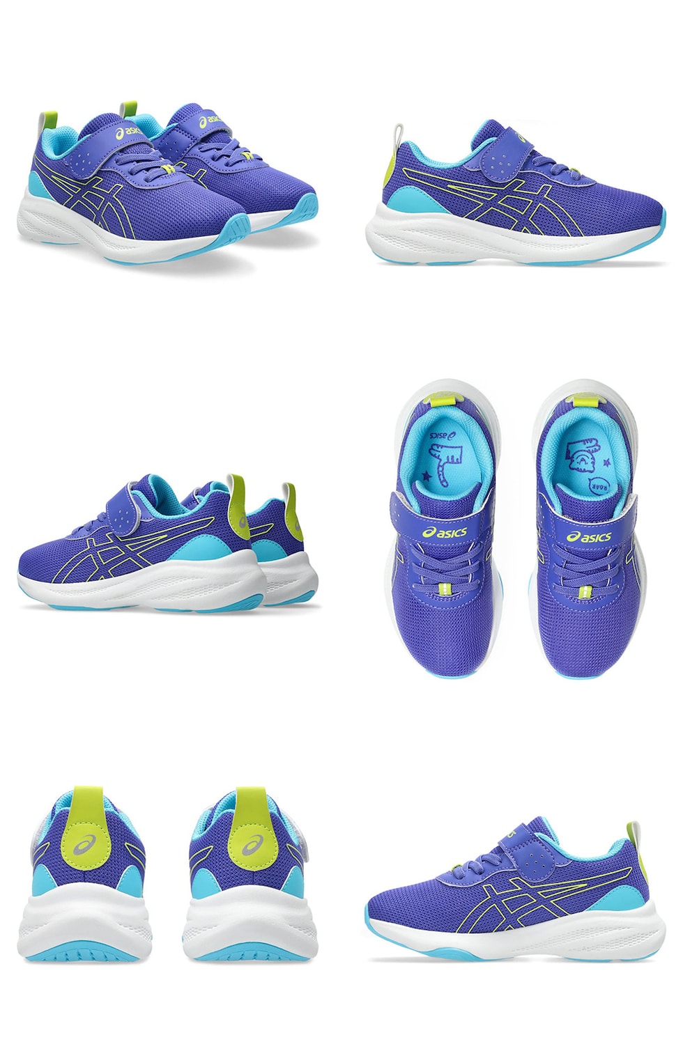 アシックススポーツ工学研究所のデータをもとに作製したキッズ専用ラストを採用、シンプルさと履き心地にこだわったクッションモデル。