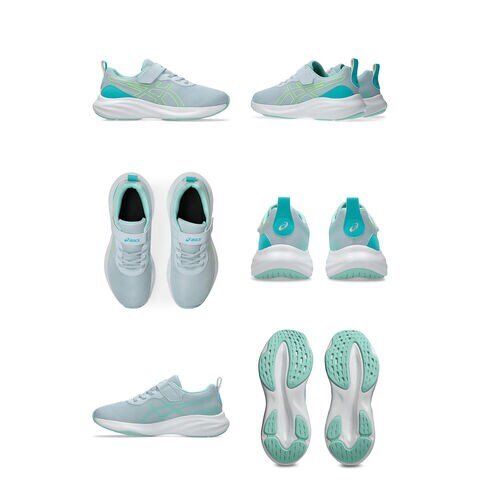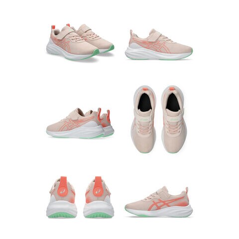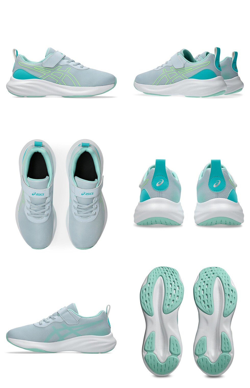 アシックススポーツ工学研究所のデータをもとに作製したキッズ専用ラストを採用、シンプルさと履き心地にこだわったクッションモデル。