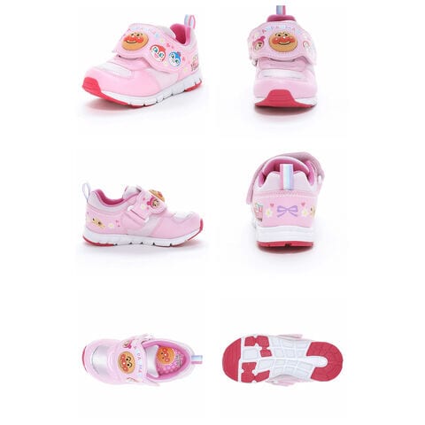 アンパンマンと仲間たちがたくさんプリントされた、明るく元気になる一足です。