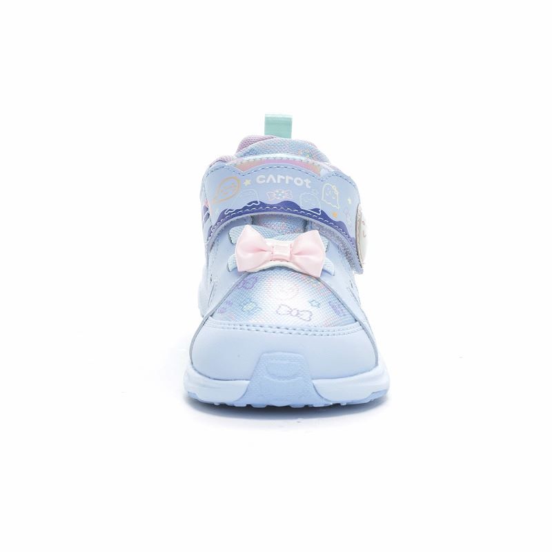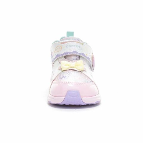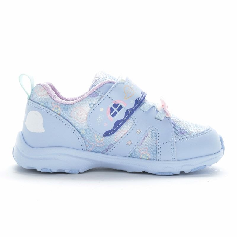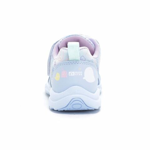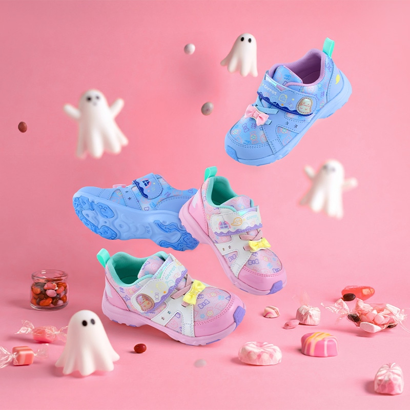 「こどもの足にいいことぜんぶ」の想いから生まれた機能シューズ「ムーンスター キャロット」のキッズシューズです。脱ぎ履きしやすいゴム紐×バンドタイプです。おばけのナイトパーティをテーマに、ゆるかわお化けたちがスイーツを囲んで楽しくパーティしている様子を表現しました。甲バンドには膨らんだぷにぷにおばけと、正面のゴム紐にはリボンをあしらいました。子どもの足の成長をサポートする「4つの機能(つま先ゆったり/カウンターボックス/フレックスジョイント/洗えるインソール)」に加え、中敷きにはサイズ選びに役立つ「サイズめやすゾーン」を搭載しています。【つま先ゆったり】つま先にゆとりを持たせた形状で、足の指を圧迫せずにのびのび動かせます。【洗えるインソール】足裏になじみ、取り出して洗濯ができるので靴内を清潔に保てる中敷きです。【カウンターボックス】子どもの柔らかくゆがみやすい足を箱型構造でしっかり支えます。【フレックスジョイント】足の曲がりと同じ位置で靴が曲がる設計で、足に余計な負担をかけません。【Ag+抗菌防臭】銀イオンの抗菌作用でにおいのもととなる菌の増殖を抑制し、防臭効果を発揮します。天然由来成分で安全です。