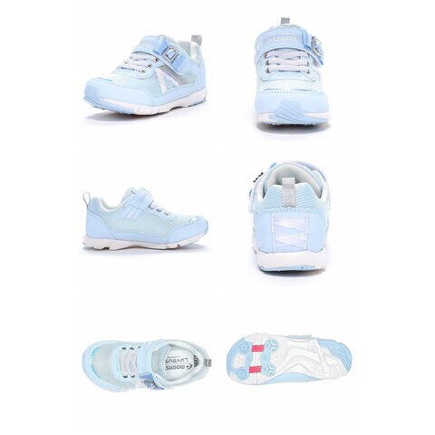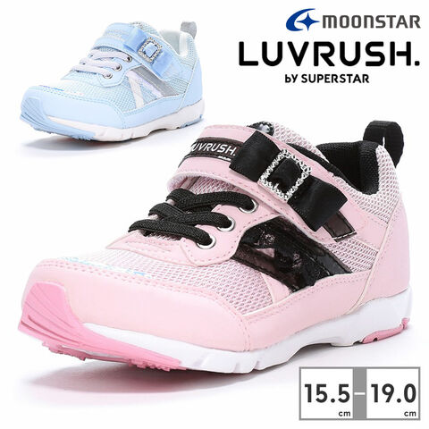 『もっと可愛く!もっと速く!女の子のスポーツシーンを足元から応援!』をコンセプトにガールズ向けに誕生した「ラブラッシュ バイ スーパースター」のキッズシューズです。「速く走る」を体現するために搭載されたパワーバネが走りをアシストします。重さは17.0cmで片足約105gです。【パワーバネ】ムーンスター独自開発の特殊なゴムを靴底に搭載し、地面を踏みこむときにパワーを蓄積し、蹴り出すと同時に一気にパワーを推進力に。【Ag+抗菌防臭】銀イオンの抗菌作用でにおいのもととなる菌の増殖を抑制し、防臭効果を発揮します。【洗えるインソール】インソールは取り出して洗えるのでいつも清潔に保てます。【耐摩耗ラバー】靴底にはすり減りが少なく、高い耐久性を発揮するラバーを採用しています。レースやリボンに踵のクロスしたテープでガーリーな雰囲気にしたデザインです。胸がときめくようなモチーフがたくさん詰った、さりげないロマンティック系コーデを足元で叶える一足です。運動会や体育の時間、クラブ活動等の走るシーンにおすすめです。