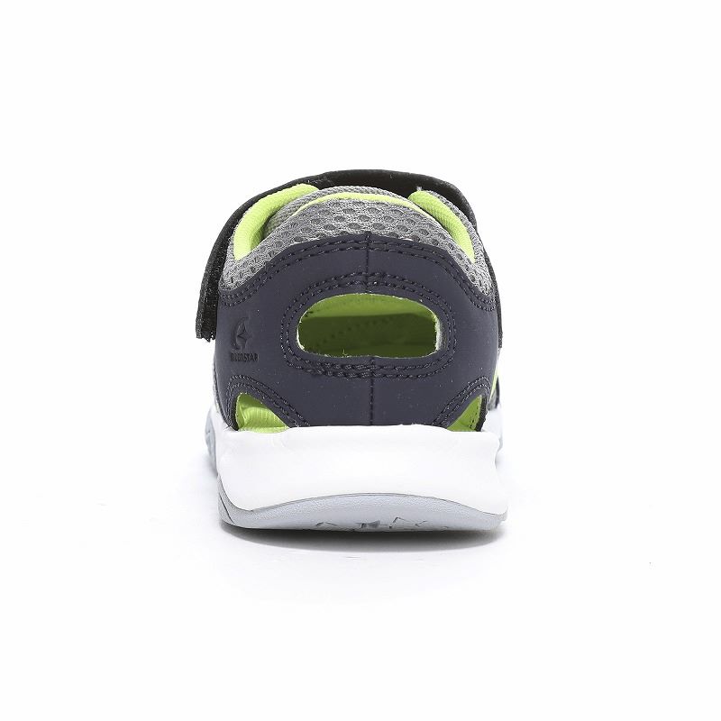 「ムーンスター」のキッズサンダルです。夏の服装に合わせやすいカラーがポイントのアウトドアデザインです。普段使いから夏のレジャーまでマルチにご使用いただけます。お子様の足を衝撃などから守る、保護性を高めた前被りの設計です。アーバンアウトドアな雰囲気が街履きとしても活躍するカラーリングです。重さは16.0cmで片足約100gです。
