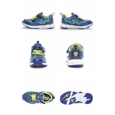 男の子の様々な潜在能力を解き放つシリーズ「スキルシューター」の「雷スキル デンゲキ」です。「スキルを解き放て」をコンセプトに子どもたちの多様化するシーンに合わせた「SKL」をアウトソールに搭載しており、踏み込む際に靴底のSKLが地面を捉え、走るための蹴り出しをアシストします。「雷スキル」は雷をモチーフにしたスパイク形状の「SKL」が走る際に地面を捉え、走りをアシストします。脱ぎ履きしやすいゴム紐×バンドタイプです。外遊びはもちろん、運動会や体育の時間等のスポーツシーンにもおすすめです。アッパーには激しい雷撃模様を鮮やかなカラーで表現しました。【Ag+抗菌防臭】銀イオンの抗菌作用でにおいのもととなる菌の増殖を抑制し、防臭効果を発揮します。【洗えるインソール】インソールは取り出して洗えるのでいつも清潔に保てます。【耐摩耗ラバー】靴底にはすり減りが少なく、高い耐久性を発揮するラバーを採用しています。