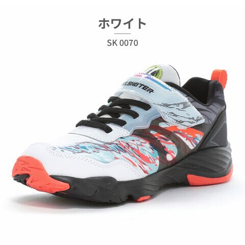 男の子の様々な潜在能力を解き放つ「スキルシューター」の「風スキル シップウ」です。「スキルを解き放て」をコンセプトに子どもたちの多様化するシーンに合わせた「SKL」をアウトソールに搭載しており、踏み込む際の荷重によって「SKL」が発動します。「風スキル」は風をモチーフにしたスパイク形状の「SKL」が走る際に発動し、走りをアシストします。脱ぎ履きしやすいゴム紐×バンドタイプです。サイドの激しい竜巻グラフィックがポイントのスピード感あふれる商品です。ホワイトはクリアパーツもポイントです。重さは21.0cmで片足約165gです。【Ag+抗菌防臭】銀イオンの抗菌作用でにおいのもととなる菌の増殖を抑制し、防臭効果を発揮します。【洗えるインソール】インソールは取り出して洗えるのでいつも清潔に保てます。【耐摩耗ラバー】靴底にはすり減りが少なく、高い耐久性を発揮するラバーを採用しています。