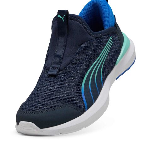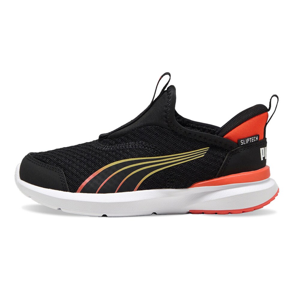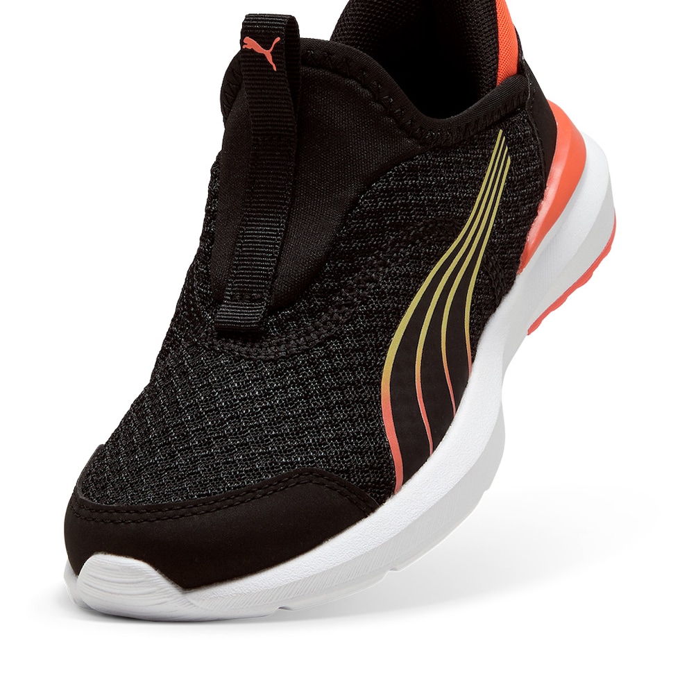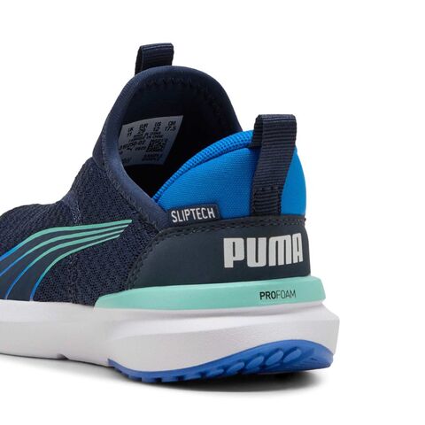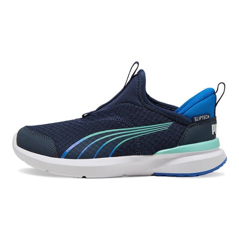 4歳から8歳のお子様におすすめのサイズ。プーマの新しいSLIPTECHテクノロジーにより、手を使わずにシューズを脱ぎ履きでき、ユニークなステップインスタイルを演出します。アッパーはスリップオン仕様で、耐久性と足運びをサポートするトラクションが特徴。ミッドソールには、ProFoamと耐久性のあるラバーポッドがどんな路面でもトラクションを発揮します。伸縮性のあるネオプレンとウェビングが元気に動き回るお子様の足にぴったりフィットします。