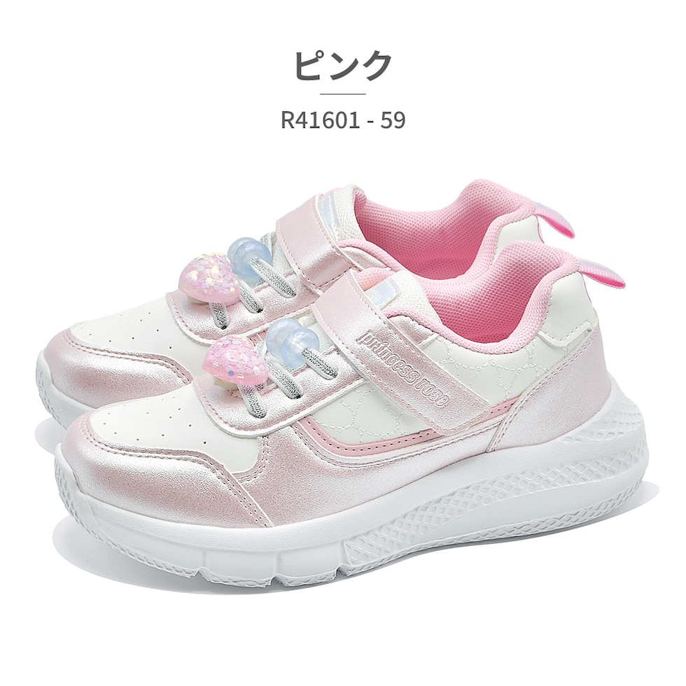 プリンセスローズ スニーカー キッズ R41601-59 Princess Rose チャーム付き 厚底 ベルクロ