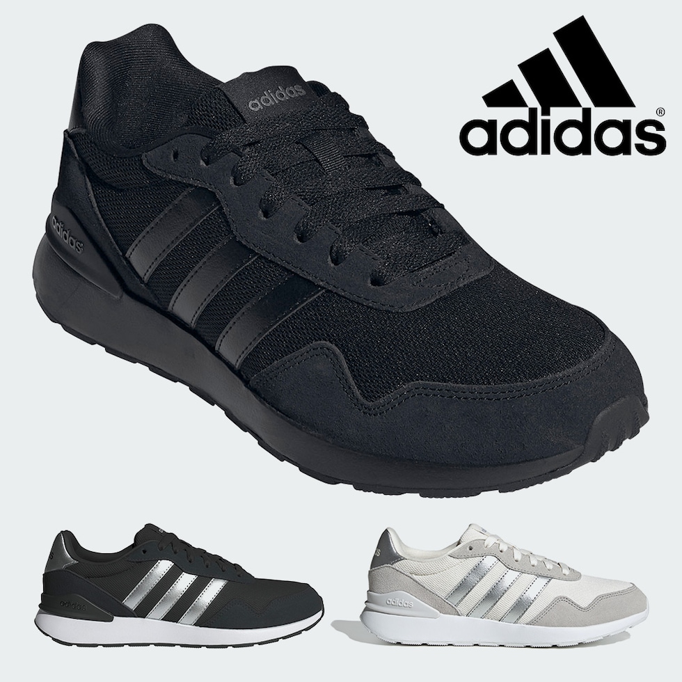(BEJGAD adidas アディダス 4-add-w-run60-01 靴 クツ シューズ カジュアル スポーツ アウトドア 学生 通学 部活 22.5cm 23cm 23.5cm 24cm 24.5cm 25cm 黒 灰)