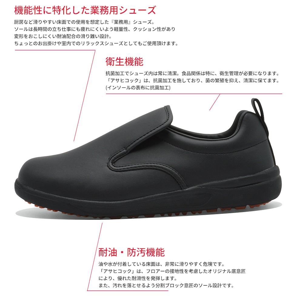 アサヒシューズ スリッポン メンズ レディース アサヒコック 101 KF69222 ASAHI SHOES 箱無し発送 耐油 防滑 幅広 調理 工場