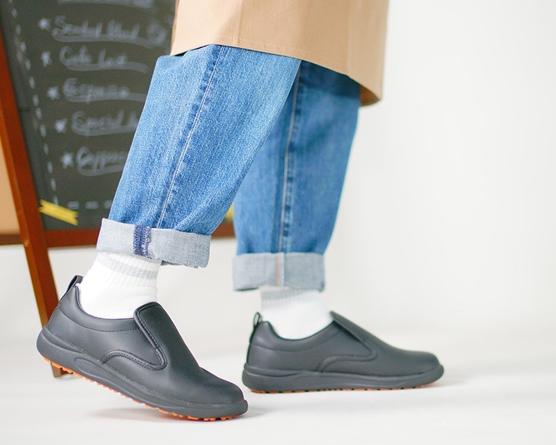 厨房など滑りやすい床面での使用を想定した『業務用』シューズ。