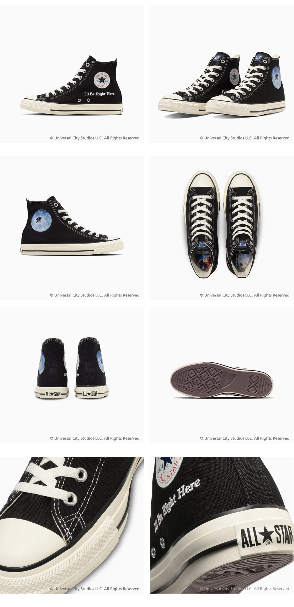 主人公のエリオットとE.T.が自転車で空を飛ぶ劇中の象徴的なシーンを、夜空に見立てたブラックのアッパーの外側にプリント。ラストシーンのE.T.の名台詞"I'll Be Right Here.(いつもここにいるよ)"をアンクルパッチの下に刺繍。