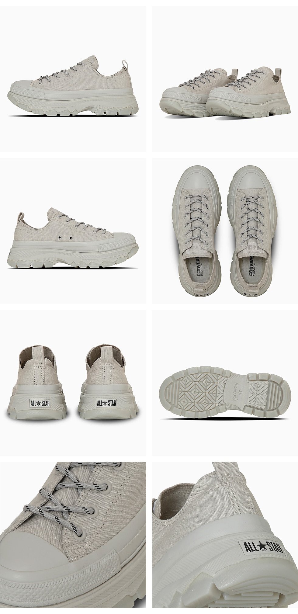 オールスターの定番スタイルに、トレッキングシューズを思わせるボリューム感あふれるアウトソールを融合させたトレックウェーブ。
