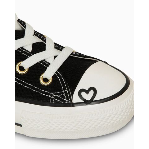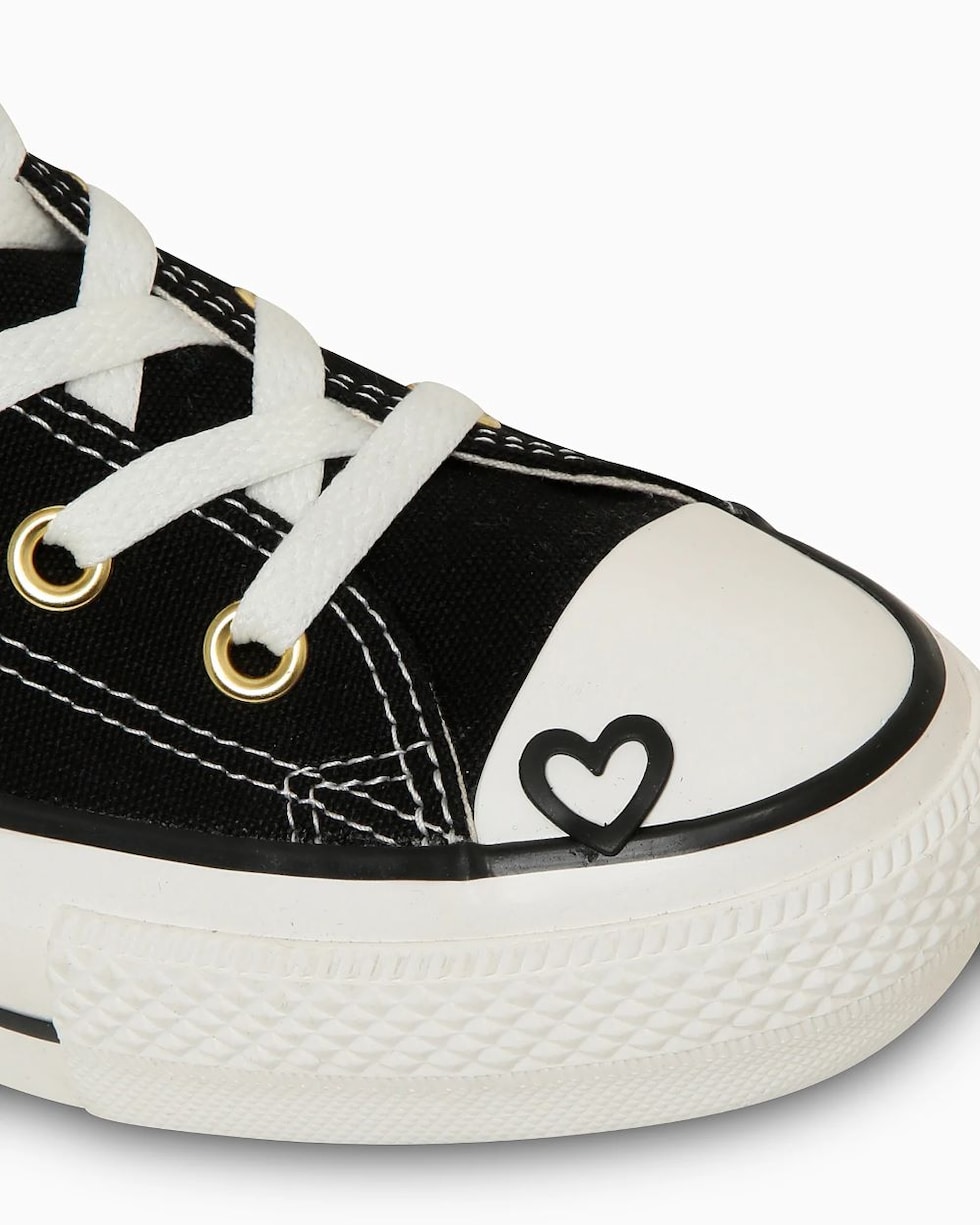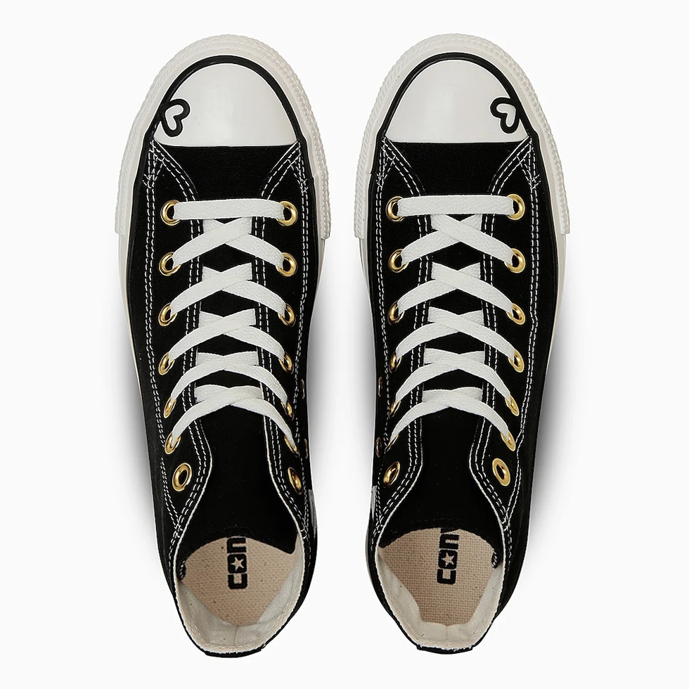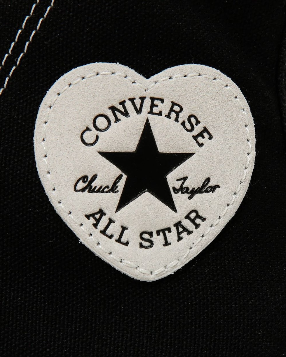 PLTS(プラットフォームソール)タイプをベースに、ハートモチーフをトウキャップとアンクルパッチに落とし込んだキュートなデザイン。