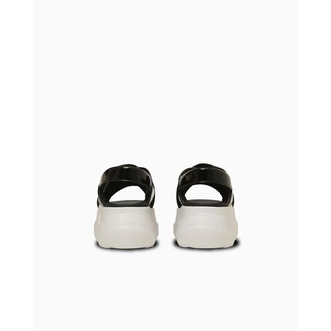 アッパーには光沢感とパフ感のある素材を、クロスベルトパターンで採用し、包み込まれるような履き心地を実現。