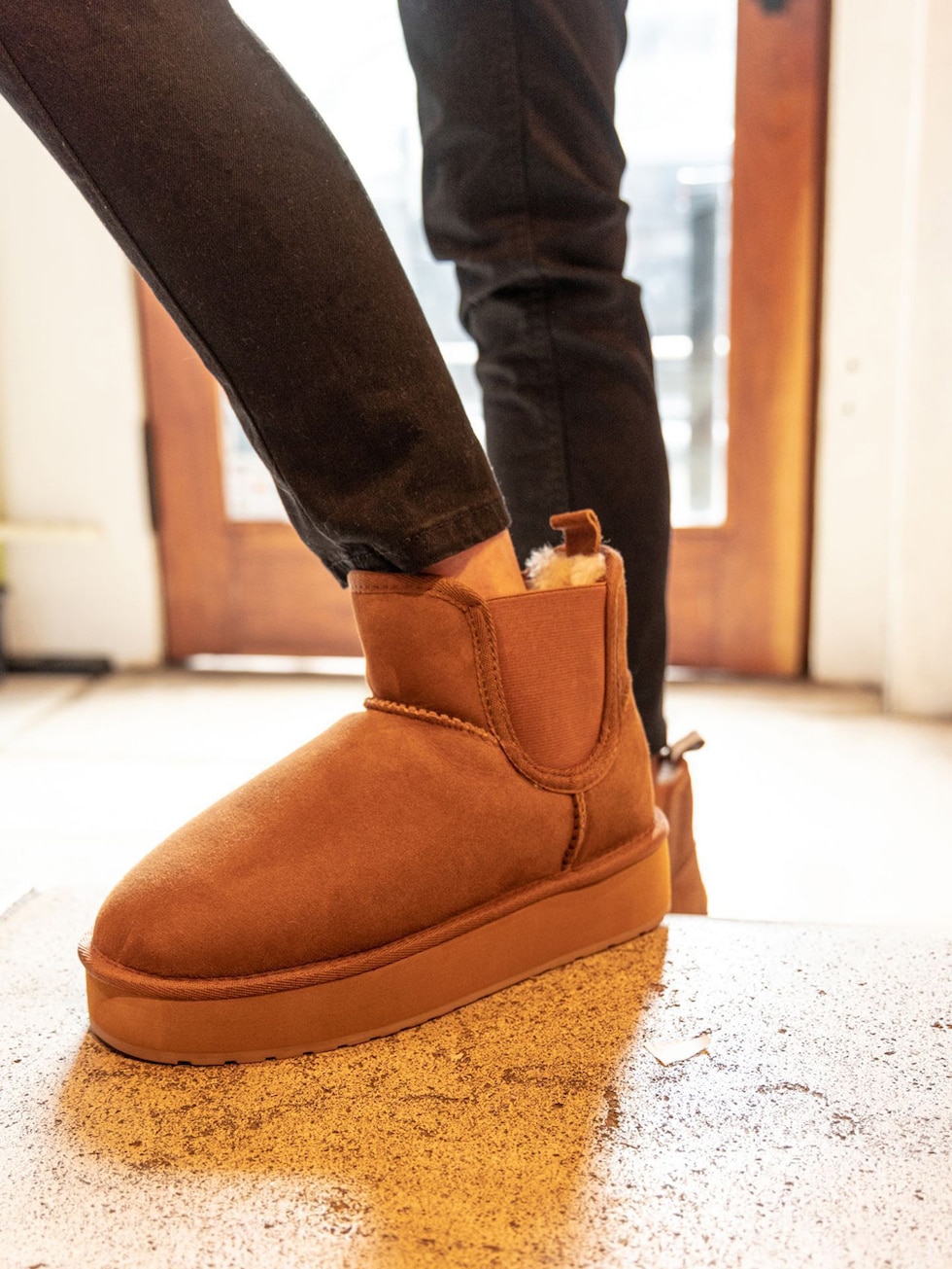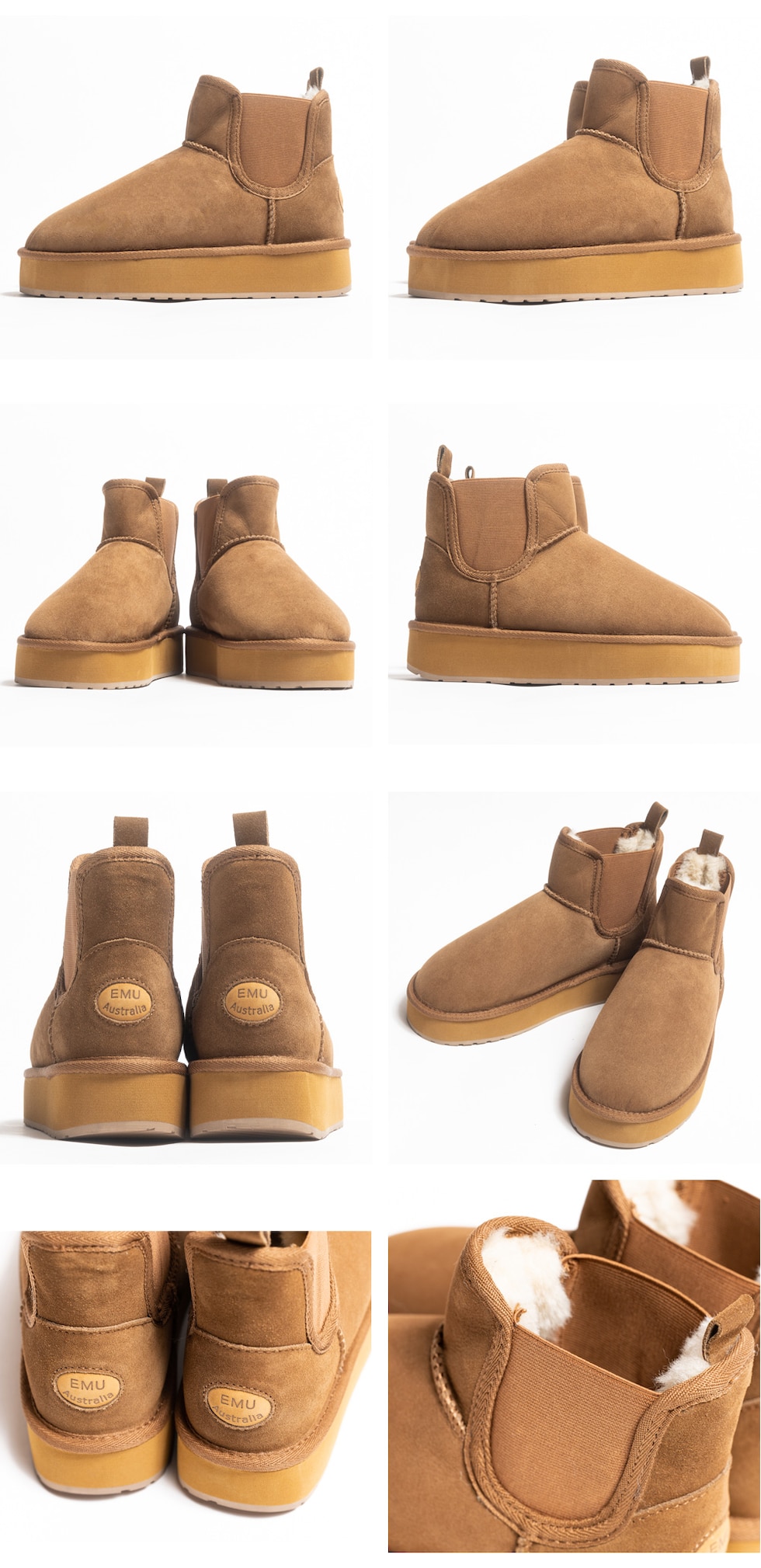 EMUの定番ムートンブーツにプラットフォームソールの厚底ブーツが登場。