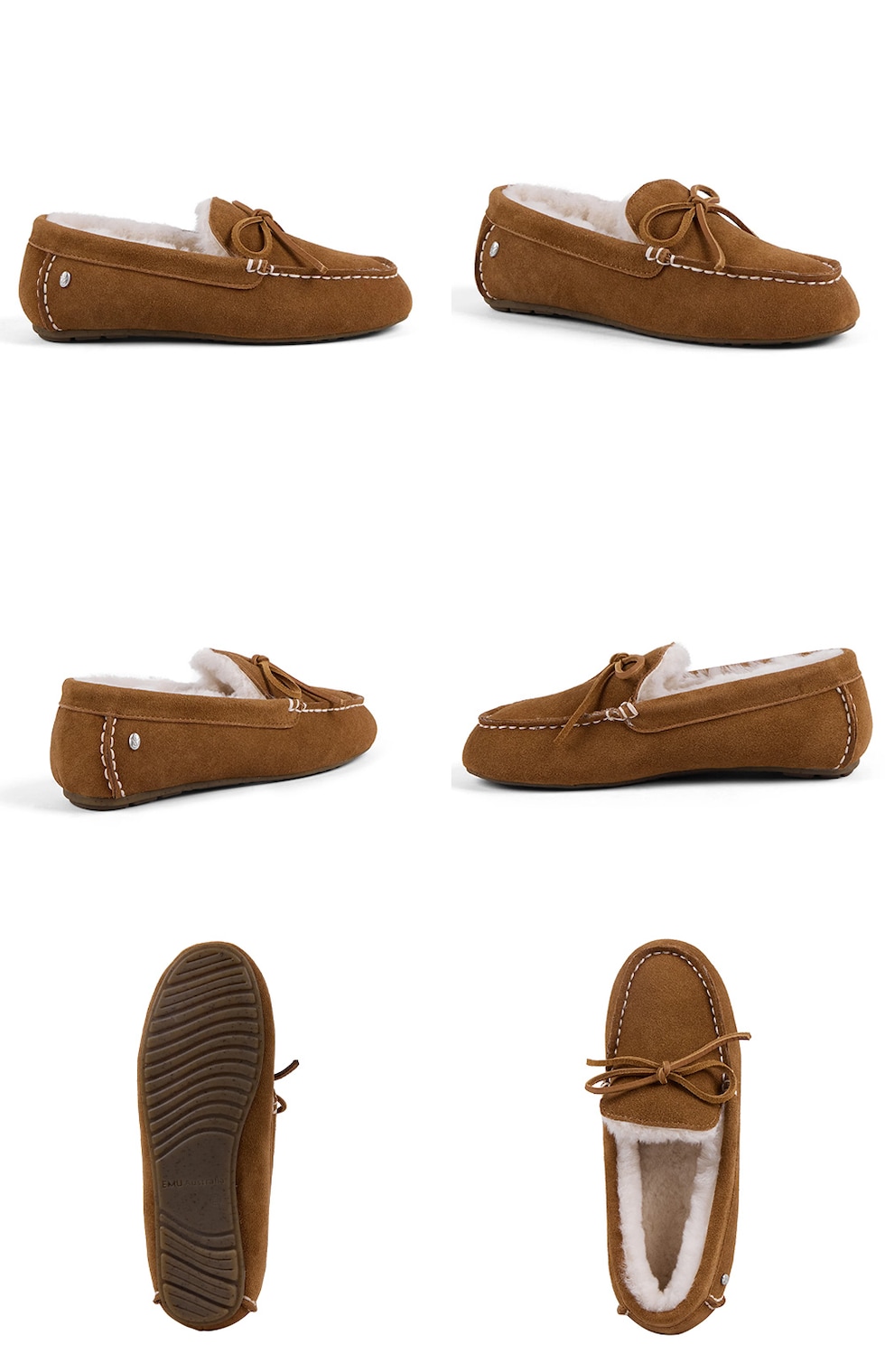 クラシックなモカシンデザインと天然シープスキンの快適さが融合したスリッポン。
