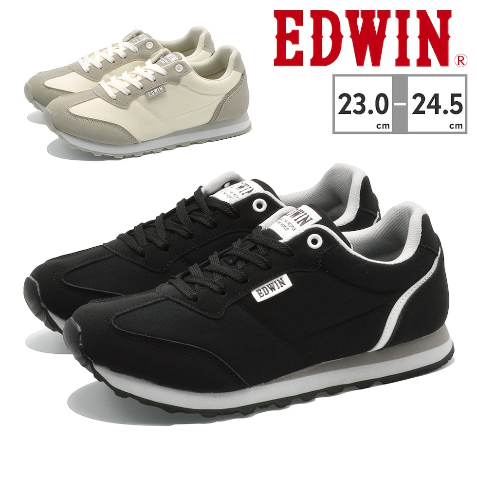 (BEJGJB EDWIN エドウィン 4-ew-w-edw4327-01 靴 クツ シューズ カジュアル スポーツ アウトドア 学生 通学 部活 23cm 23.5cm 24cm 24.5cm 黒 白)